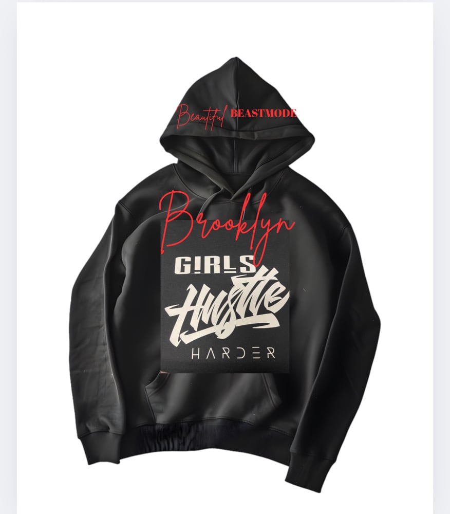 Who Hustles Harder? Choose any city, state, or region in red, Girls Hustle Harder will be in white on a black sweatshirt. The city, state, or region, will be in red. The brand “Beautiful Beastmode” will be on the hood of the sweatshirt in red. Swipe through pictures above for examples. Color may vary slightly due to different phones/computers