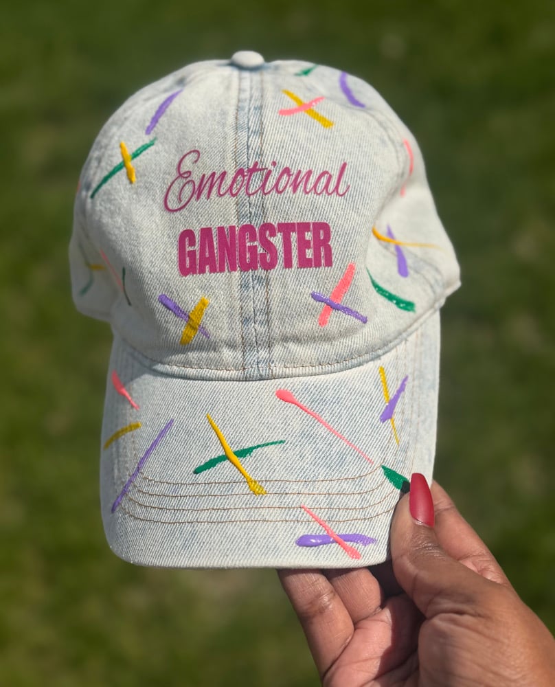 For my Emotiomal Gangsters.. Spring colors of paint. Splashed on the hat.